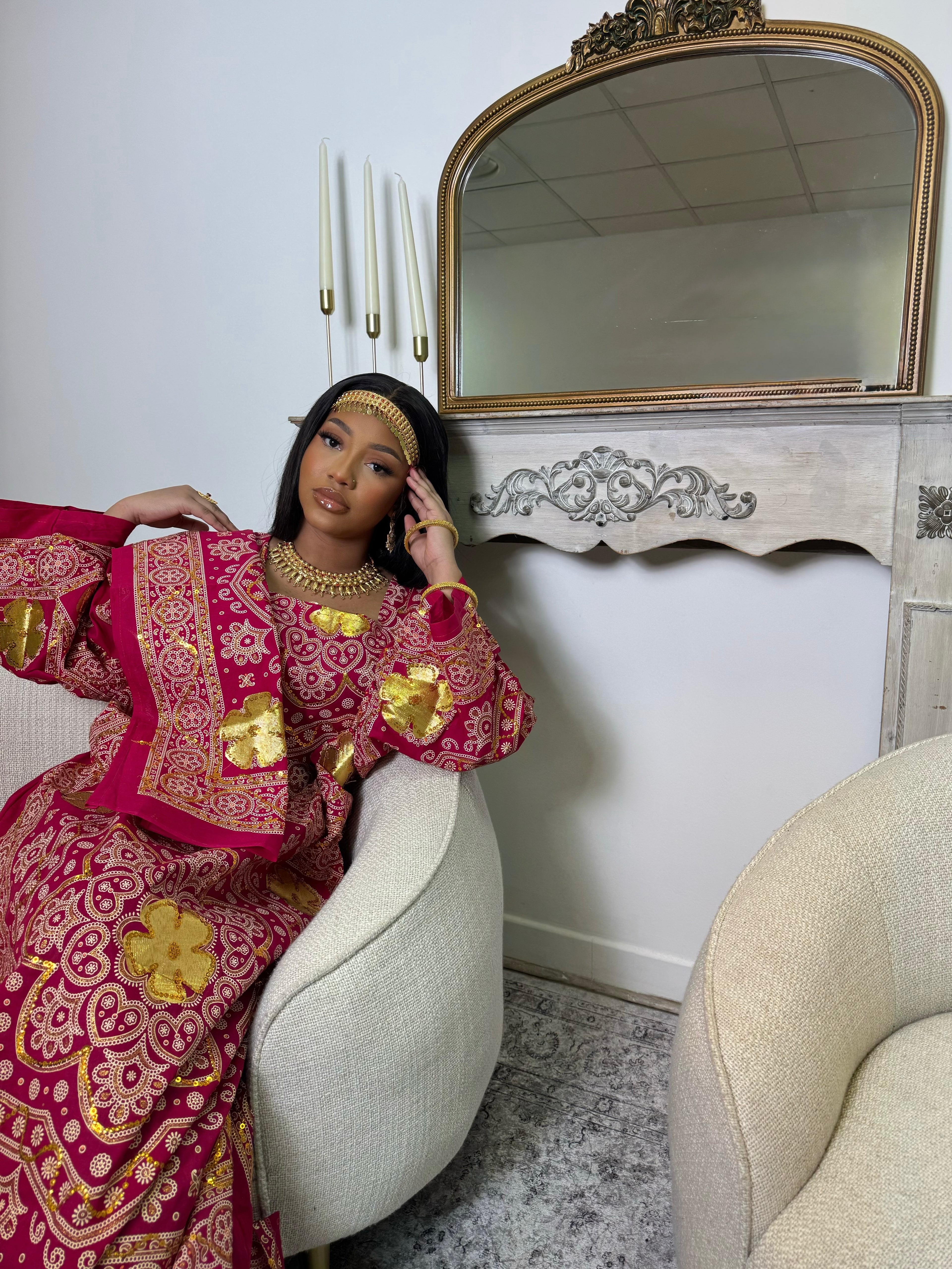 Le boubou Hilma est une robe Chiromani avec son châle, simple et élégant.